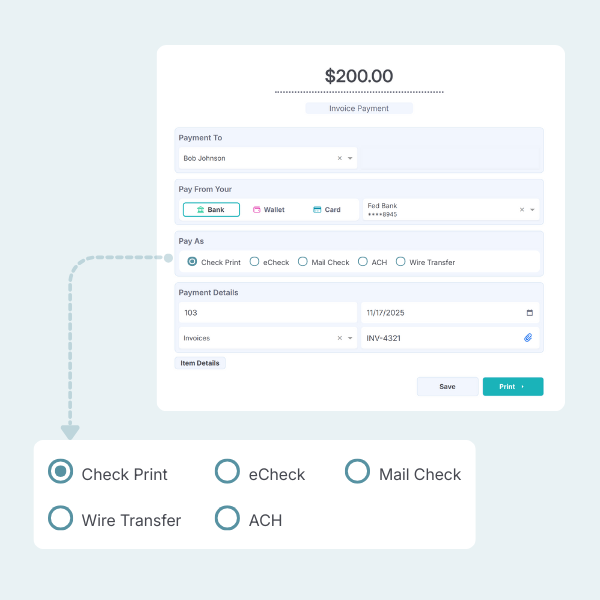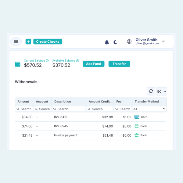 FiChecks supports check printing, check mailing, eCheck, ACH, and wire transfer from a single dashboard. With FiChecks, you can manage different payment types without switching platforms or tools. Everything stays connected in one secure system.