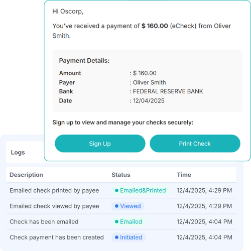 An electronic check payment is a paper check moved online. With FiChecks, you can create, send, and track electronic checks without dealing with physical paperwork.