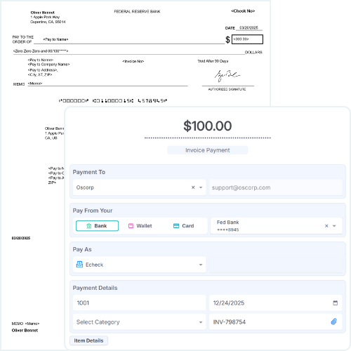 Each sent check stays recorded with its status and delivery details. The platform keeps records easy to review later. Payment history remains available for reference and reconciliation.