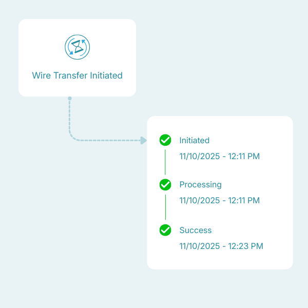 It varies by destination and receiving bank, but FiChecks shows estimated timelines for every wire transfer so you know when funds are expected to arrive.